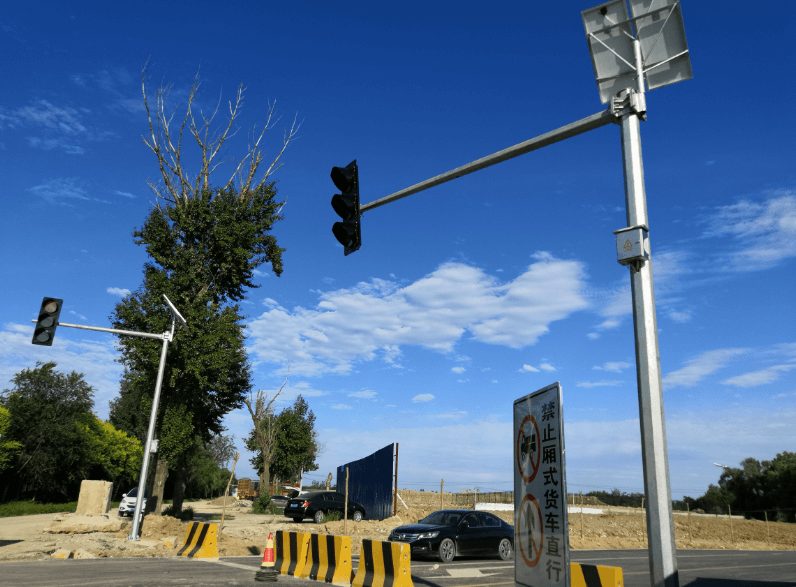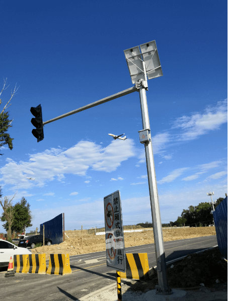 ,由于此路段不便走地下線,故此本次設(shè)計(jì)全部為太陽能光伏發(fā)電,紅綠燈監(jiān)控桿安裝完成后將為機(jī)場周圍居民提供出行便利條件。